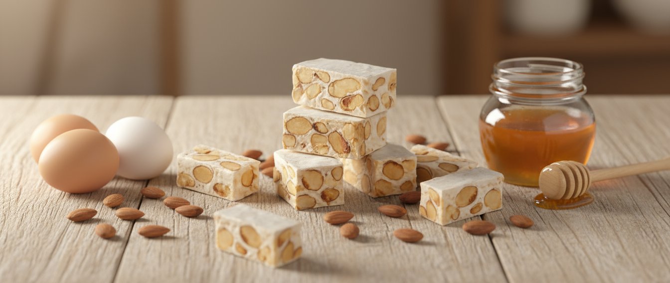 In industrially produced nougat, the main ingredient is refined sugar: inexpensive and easy to process.
