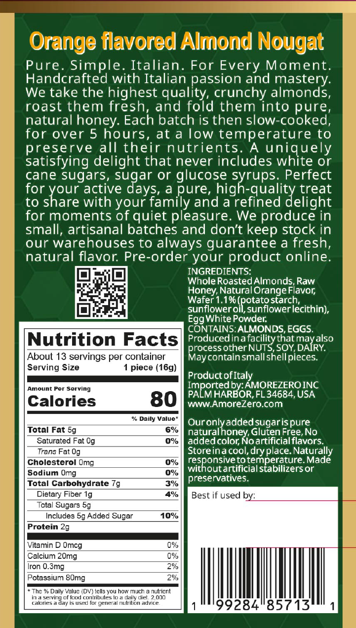 Soft Italian nougat naturally flavored with Orange. Made of 98% almonds, honey, and egg white.
